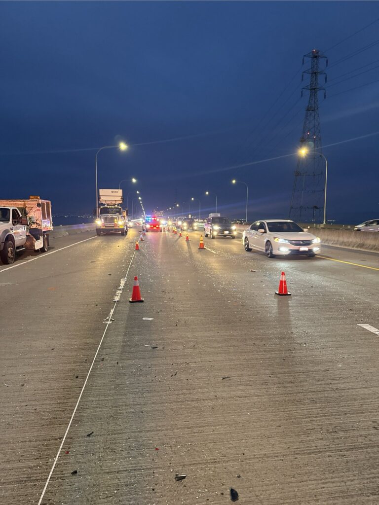 De acuerdo con la Patrulla de Caminos de California (CHP), el percance se registró alrededor de las 2:45 p. m. en la parte central del puente. En el incidente estuvieron involucrados dos vehículos: una camioneta tipo van y un sedán.